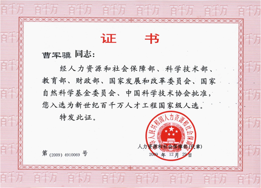 Dr.Junji Cao is granted as a candidate of National New Century Talents Project